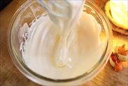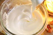 白っぽくふわっと、垂らすとスーっと消えるくらいになったら中速にして約4分間泡立てました