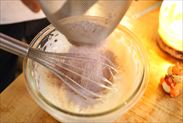 ・生地が泡だったら米粉と純ココアパウダーをすぐに加えれるように米粉と純ココアパウダーを同じ器に計量して混ぜ合わせてふるっておきます(生地に加えるときに再びふるいながら加えます)