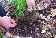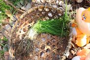 ノビルの根元の鱗茎ごと全体を収穫する場合、そのままひっぱって抜こうとしてもちぎれてしまうので、ノビルの生えている周りを小さなスコップなどで深さ10㎝ほどぐるりと掘って、根元の下10㎝ほどにスコップをいれ優しく引っ張りながら根元ごと掘り起こし抜きます
