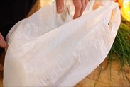 ・収穫したノビルはある程度土は落としましたがまだ土がついた状態。キッチンペーパーなどをぬらして根元を包んで保冷したバックに入れて保湿と保冷をしながら持ち帰りました