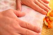 椿塩などを作る場合はキッチンペーパーなどに洗った花びらを広げて、上からもキッチンペーパーをかぶせて水分をふき取ります
