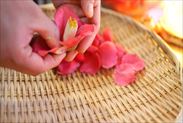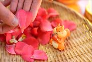 椿の花びらを花から1枚1枚丁寧にはがします